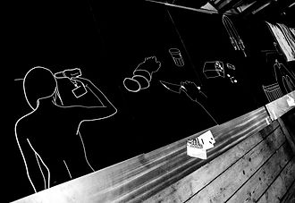 Exposition de 5 artistes à la REcyclerie (PARIS 10) lors d'une soirée organisée par PWFM. Vous pouviez y découvrir une sélection de 10 de mes photos et dessins.